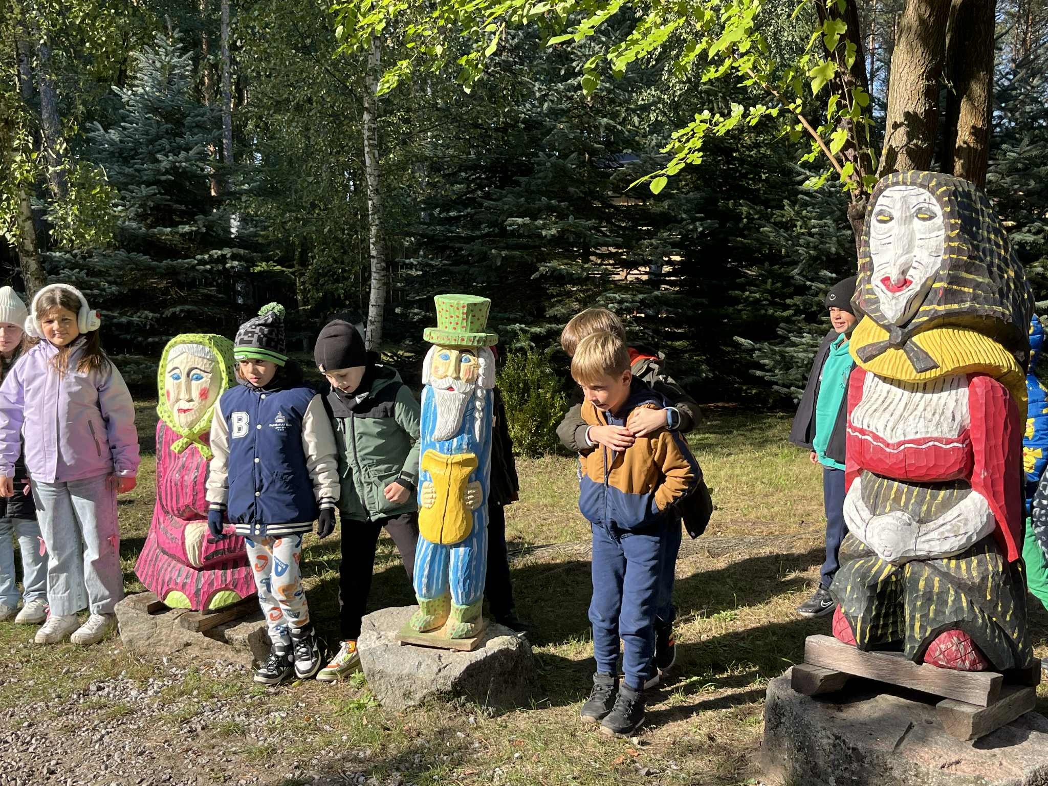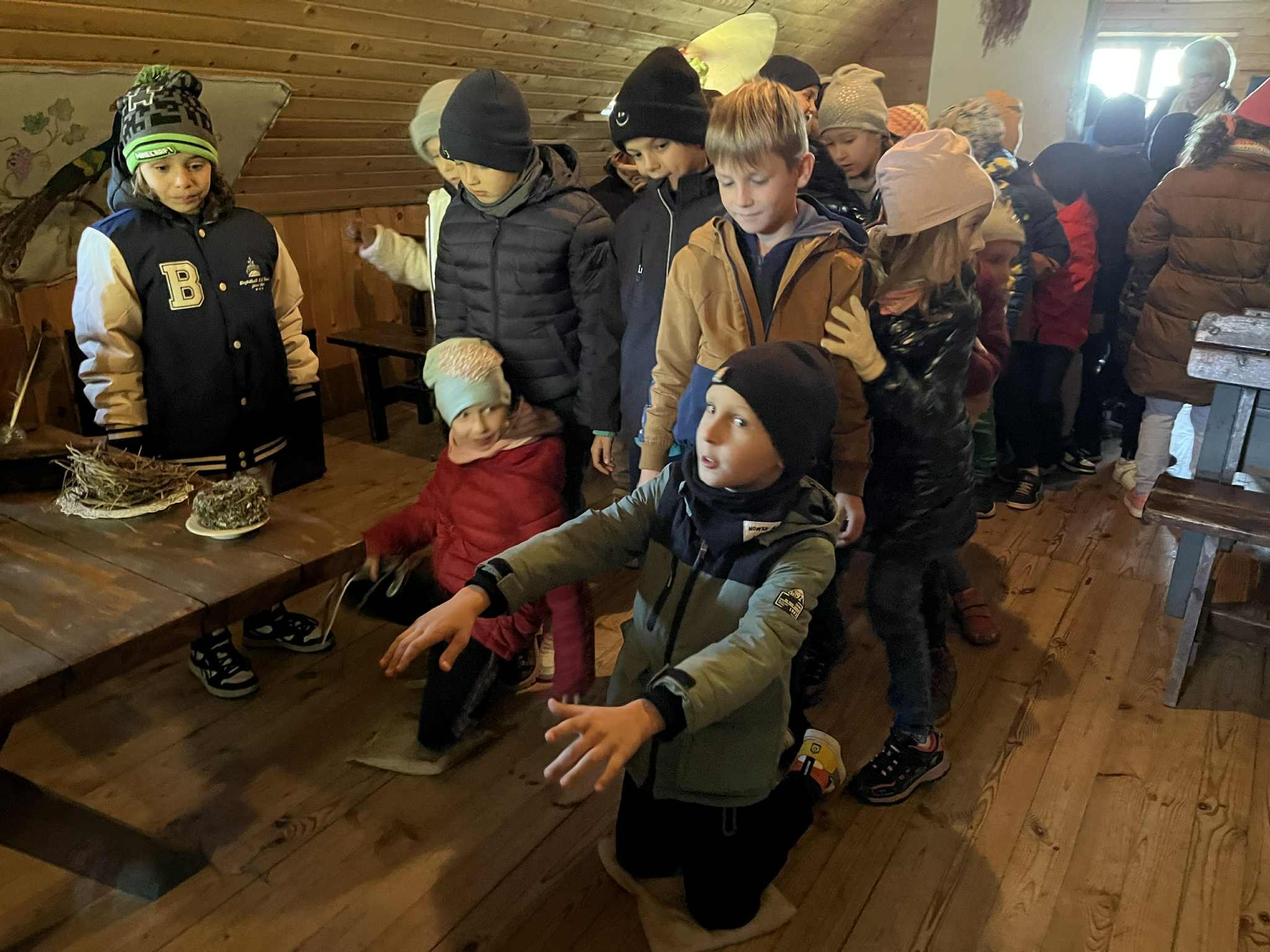 Dzisiaj klasy IIa i IIc wybrały się na wycieczkę do Gościnnej Osady w Kawęczynie. Powitał nas uroczyście gospodarz w pięknym stroju ludowym. Potem zwiedziliśmy prawdziwą kuźnię, starą wiejską szkołę. I uwaga! Kiedyś niegrzeczniaki klęczały na grochu! Poznaliśmy drogę od ziarenka do bochenka. Zwiedziliśmy skansen z wiejskimi zagrodami. Był super plac zabaw a na koniec ognisko z kiełbaskami. No i pogoda wymarzona na taką jesienną wycieczkę.