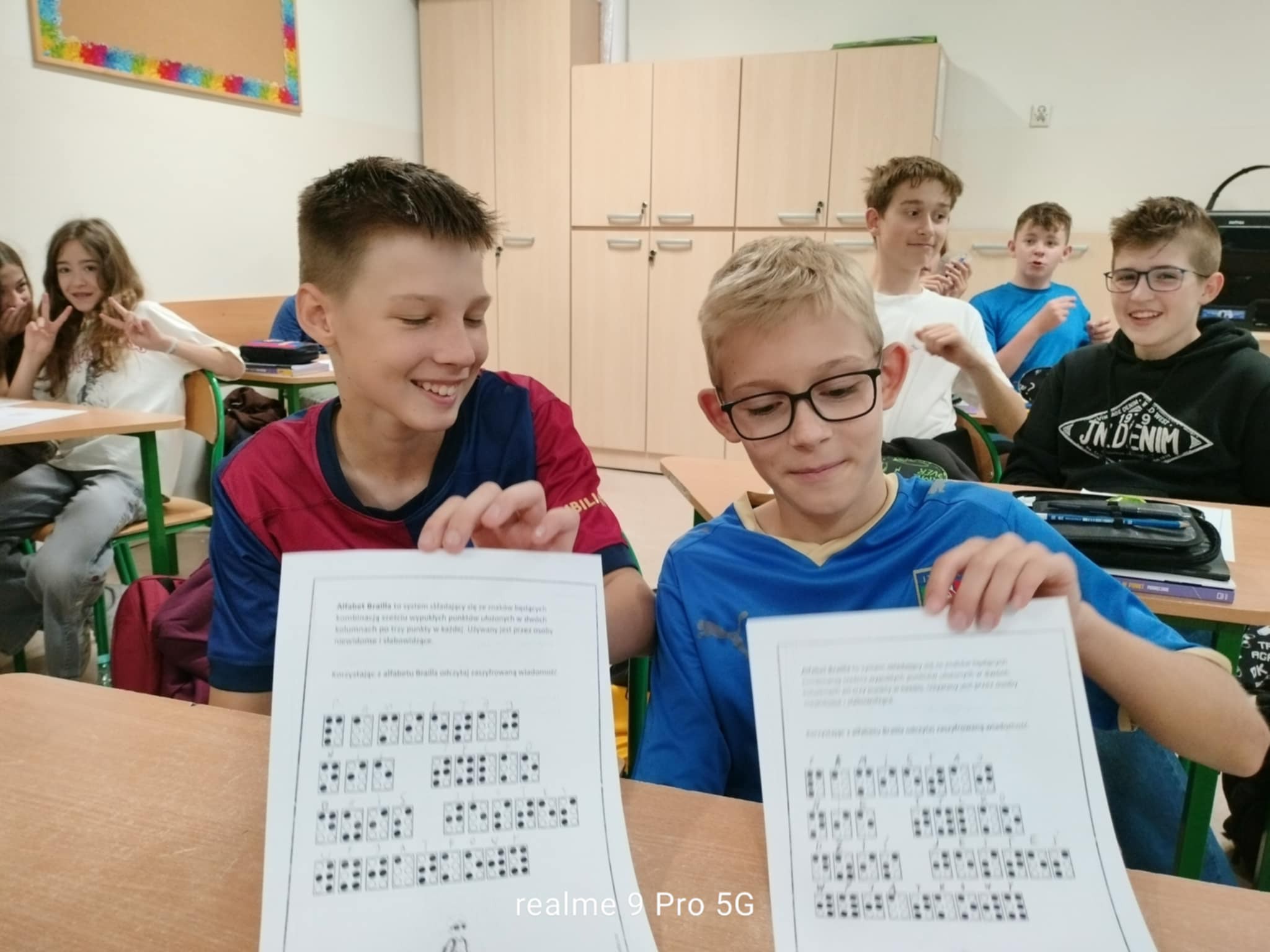 15 września świętowaliśmy w naszej szkole Dzień Kropki. Z tej okazji uczniowie na zajęciach matematyki liczyli kropki na biedronkach, zapisywali imię korzystając z alfabetu Braille, grali w kropki. Było dużo kropek, zabawy i radości. Dzień Kropki - jesteśmy kreatywni i wszyscy mamy talent