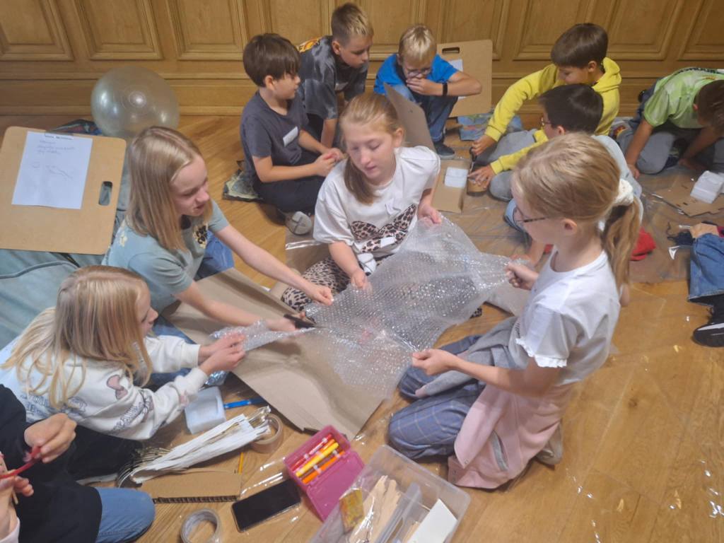 Ptaki budują gniazda, lisy lubią rozbudowane nory, a mrówki odnajdują swoje korytarze w mrowisku. Ludzie także poszukują schronień, od wieków nadając im ciekawe kształty, struktury i kolory. Na warsztatach w Kamienicy architekta Hilarego Majewskiego klasa IVA zastanawiała się, co jest potrzebne by zbudować dom i stworzyła własne makiety miejsc wymarzonych do zamieszkania przez zwierzęta. Powstała słoniarnia, wybieg dla małp z huśtawkami, delfinarium z pierścieniami do skakania, wypasiona buda dla psa oraz wybieg dla pand z bambusowym ogrodem i hamakiem do wypoczynku. Wspólna praca sprzyjała integracji klasowej, a wymiana pomysłów skutkowała super kreatywnymi dziełami. A po warsztatach chwila szaleństwa na placu zabaw przed Kamienicą.