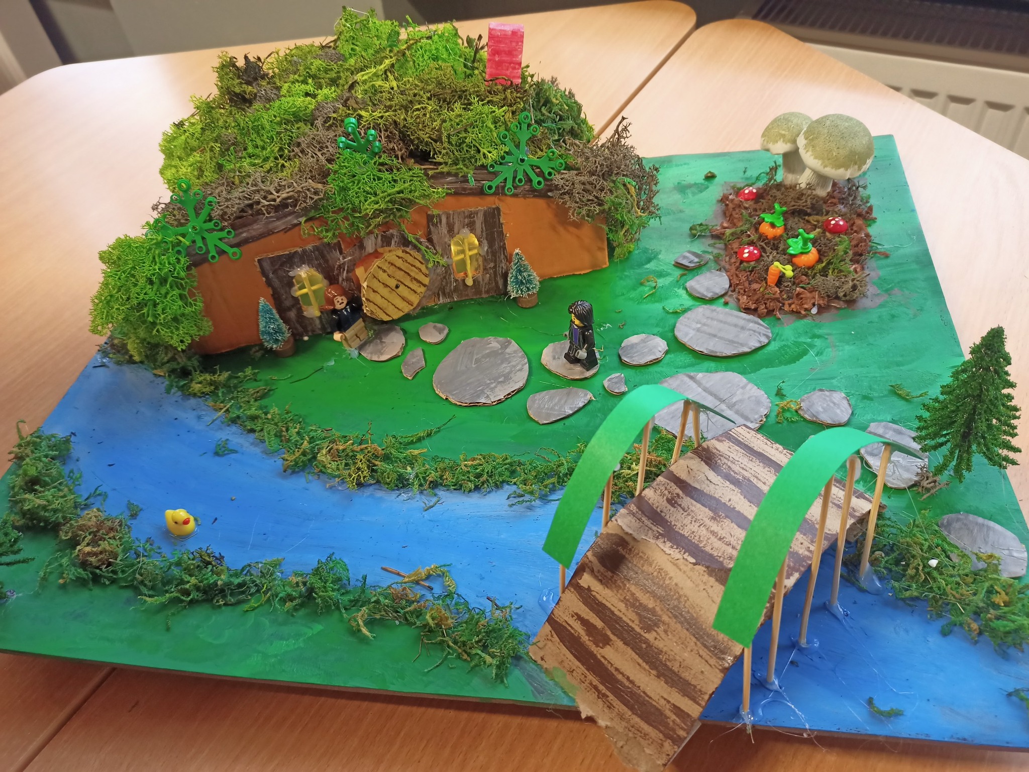 Na zakończenie omawiania lektury "Hobbit", uczniowie kl.6 budowali makiety Śródziemia. Były norki Bilba, Miasto nad Jeziorem, Samotna Góra. Pomysłowość uczniów i sposób wykonania budzą podziw. Makiety można oglądać w sali polonistycznej.