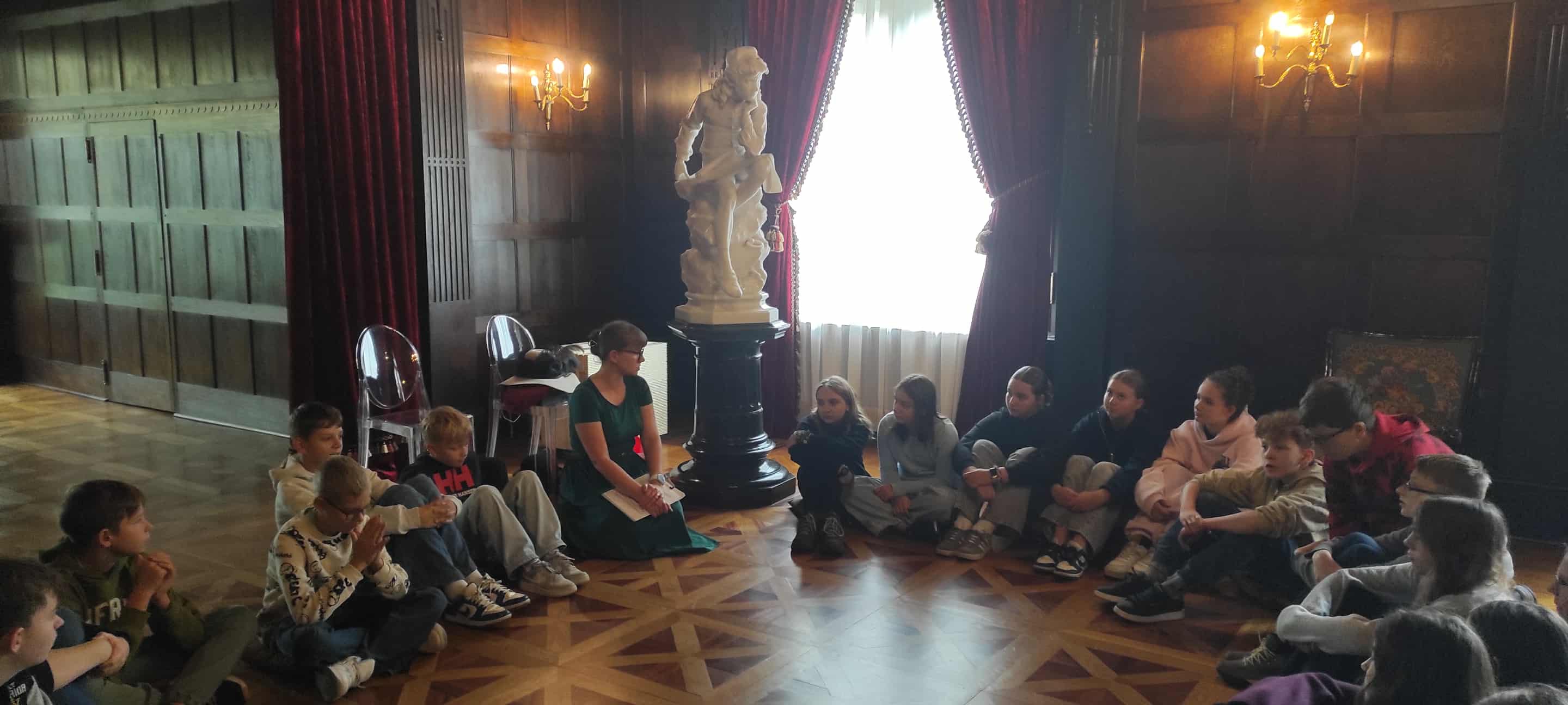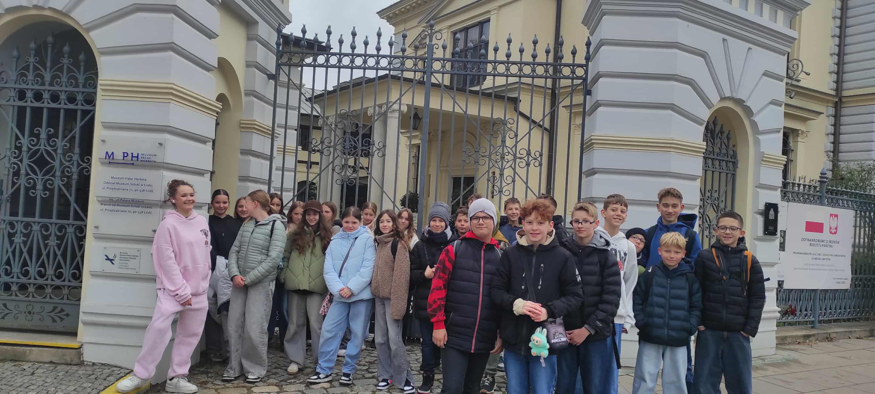 Uczniowie klasy 6 wyruszyli dziś na wycieczkę do niezwykłego miejsca w Łodzi, do Pałacu Herbsta. Braliśmy udział w warsztatach "Pałacowe maniery" i okazało się, że większość zasad dobrego wychowania jest wciąż aktualna. Mieliśmy okazję zobaczyć, jak wyglądali i ubierali się nasi pradziadkowie, jak zachowywano się przy stole i jak do niego nakrywano. Zwiedziliśmy przepiękne wnętrza pałacu i spacerowaliśmy po Księżym Młynie.