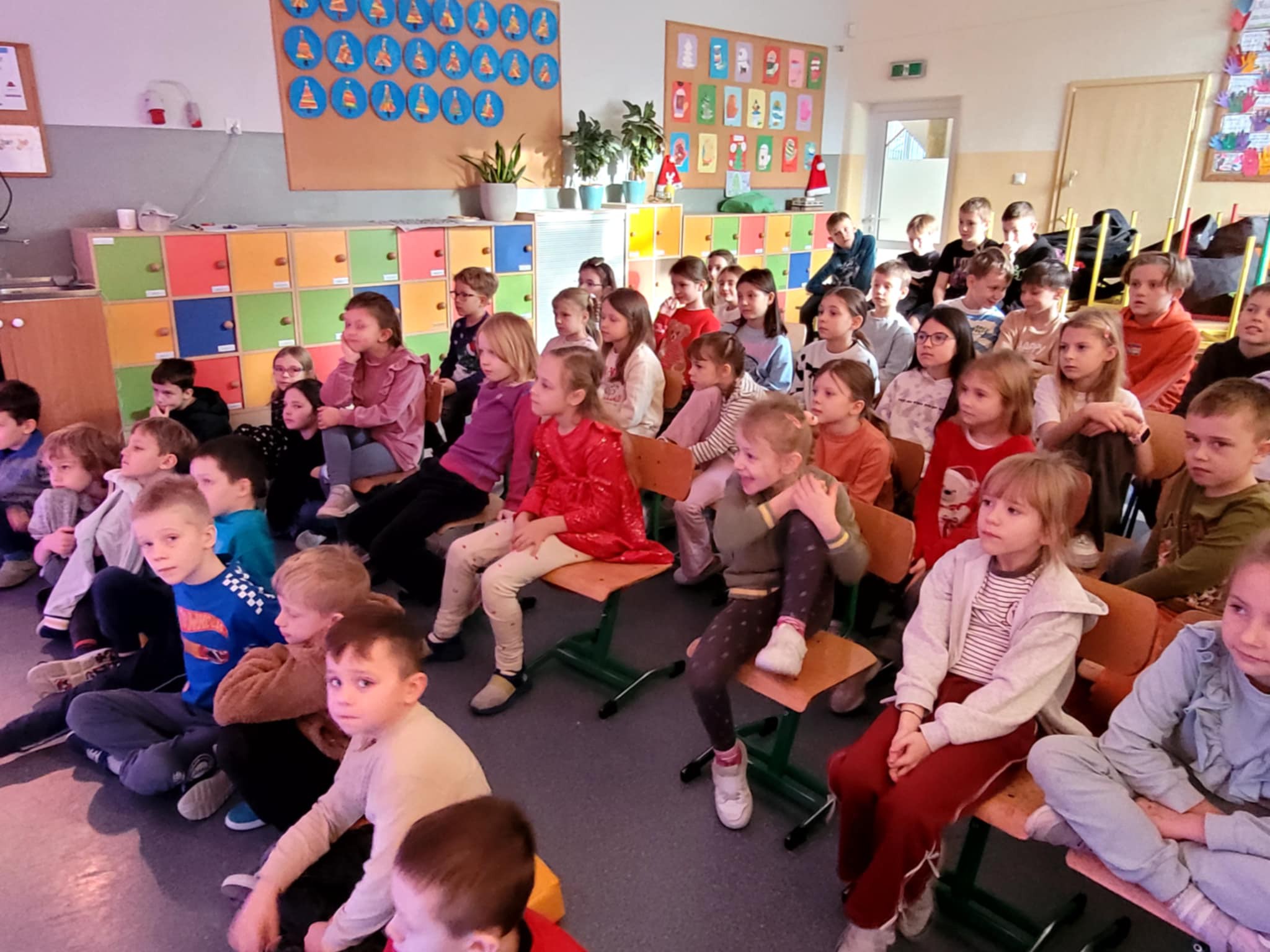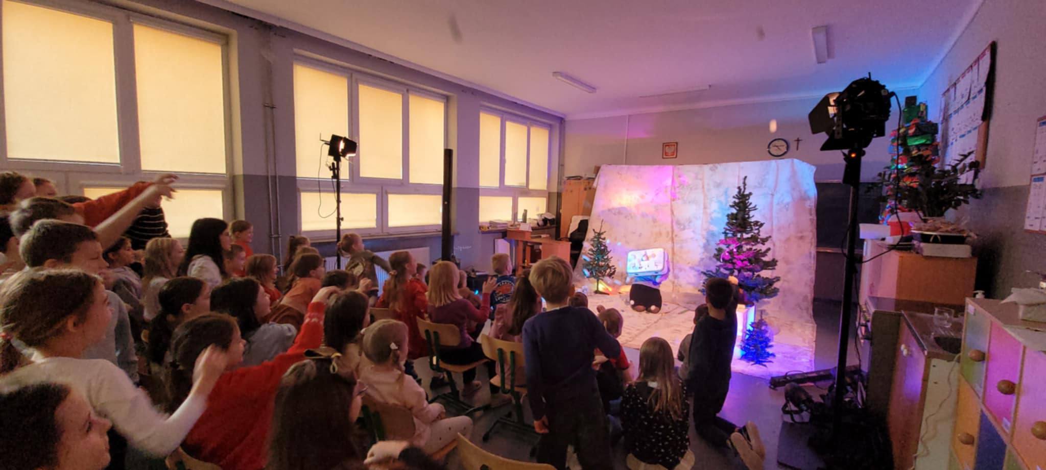 Dziś klasy 3a, 2a, 2c i 1a uczestniczyły w przedstawieniu grupy teatralnej Bajki Agi. To kolejne spotkanie z aktorami, ale tym razem uczniowie mieli okazję uczestniczyć w spektaklu pt. "Myszka TupTup w poszukiwaniu gwiazdkowego prezentu". Ta krótka historia z przesłaniem, uświadomiła wszystkim, co tak naprawdę jest ważne. Uczniowie doskonale wiedzą, że największą wartością jest rodzina. Znakomicie poradzili sobie z rozpoznaniem egoistycznego zachowania głównej bohaterki i wskazali jak może odmienić swoje serce. Aktorzy potrafili zaangażować widownię i wejść z nią w interakcję, dzięki czemu najmłodsi mieli poczucie, że są częścią widowiska. Dodatkowo była to okazja do poznania rekwizytów i lalek z przedstawienia oraz wcielenia się w różne role. Największym zaskoczeniem było jednak, to, że towarzyszyła nam autorka tej Bajki. Jak się szybko okazało jest to mama jednego z naszych uczniów. Dziękujemy za miłe chwile.