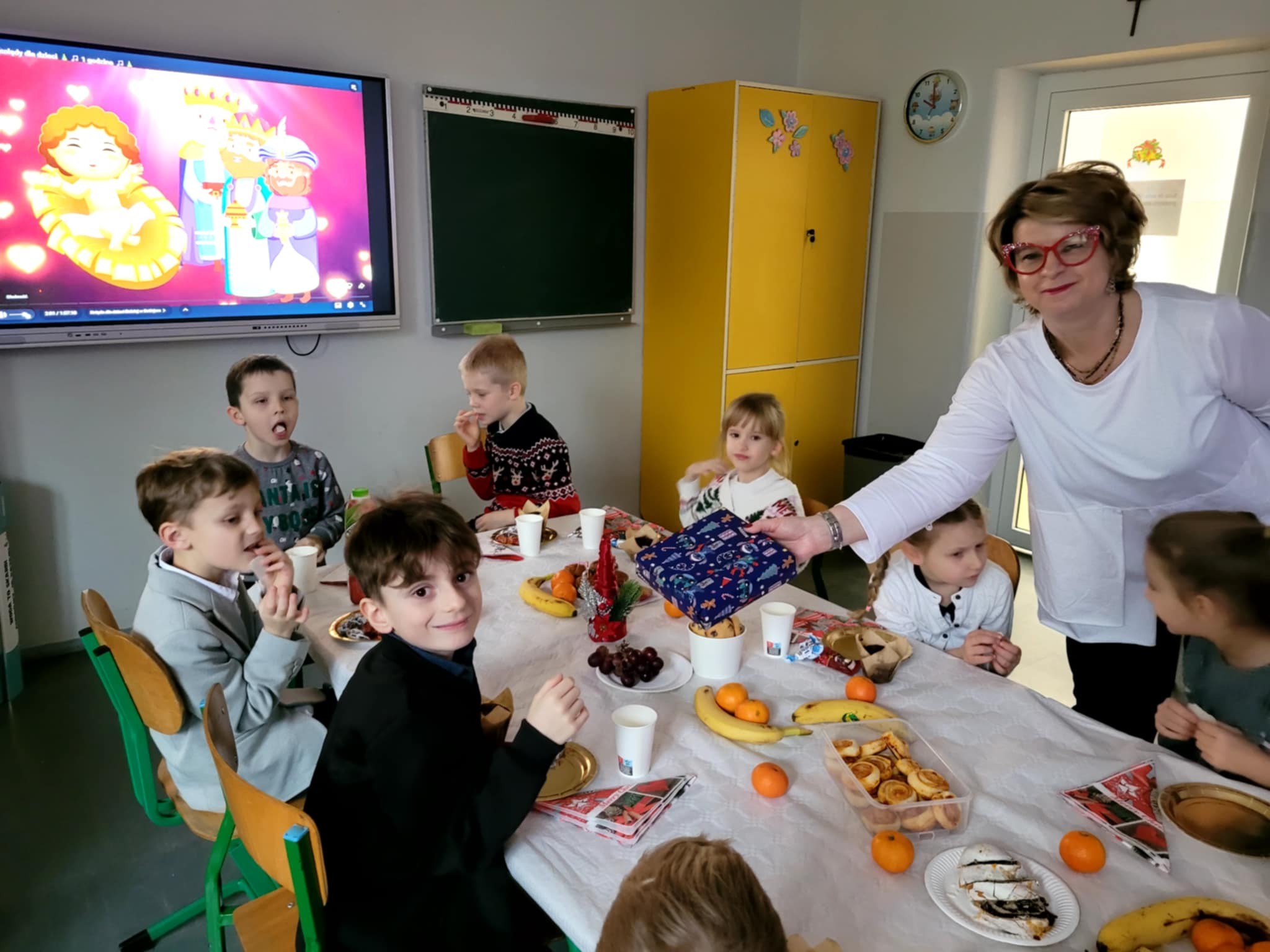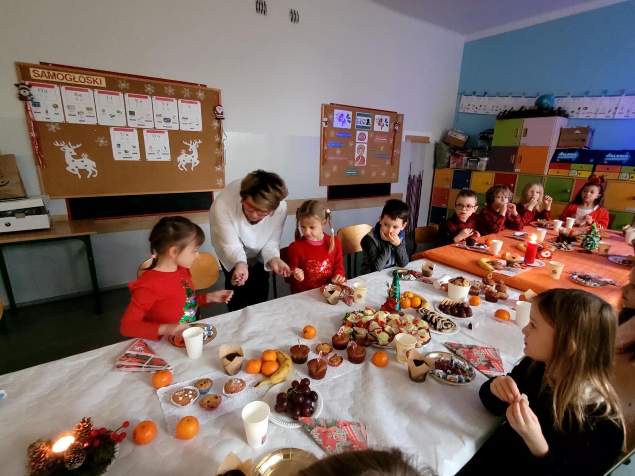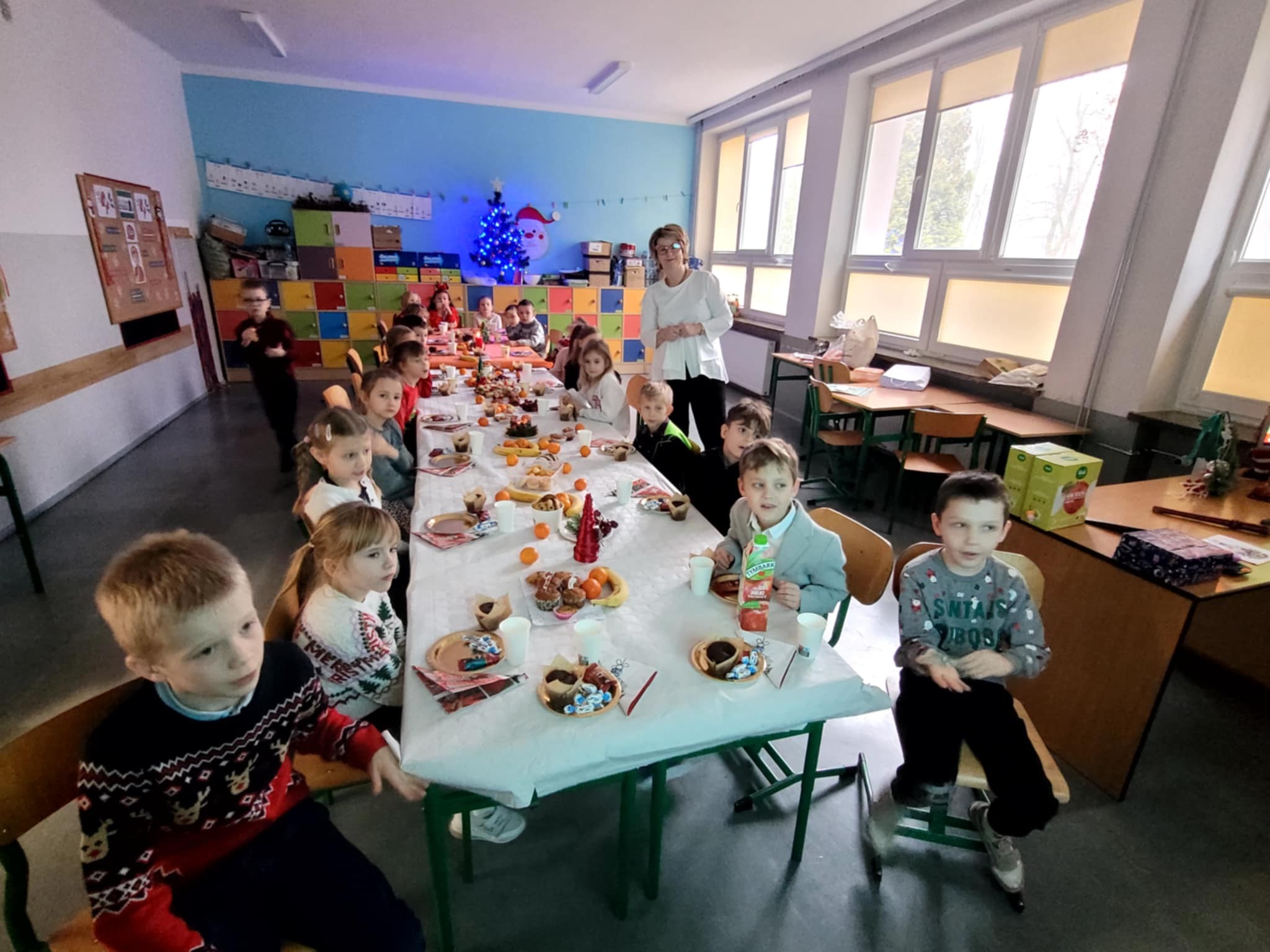 Dzisiaj odbyła się w klasie 1a wigilia, która była wspaniałą okazją do wspólnego świętowania i dzielenia się tradycjami. Uczniowie przynieśli owoce i słodkości przygotowane przez rodziców. Podczas spotkania nie zabrakło również wspólnego kolędowania. Każdy miał okazję podzielić się opłatkiem i złożyć sobie życzenia. Dziękujemy rodzicom za przyniesienie pysznych ciast oraz wszystkim uczniom za wspólne świętowanie. Czekamy z niecierpliwością na kolejne takie wydarzenia!