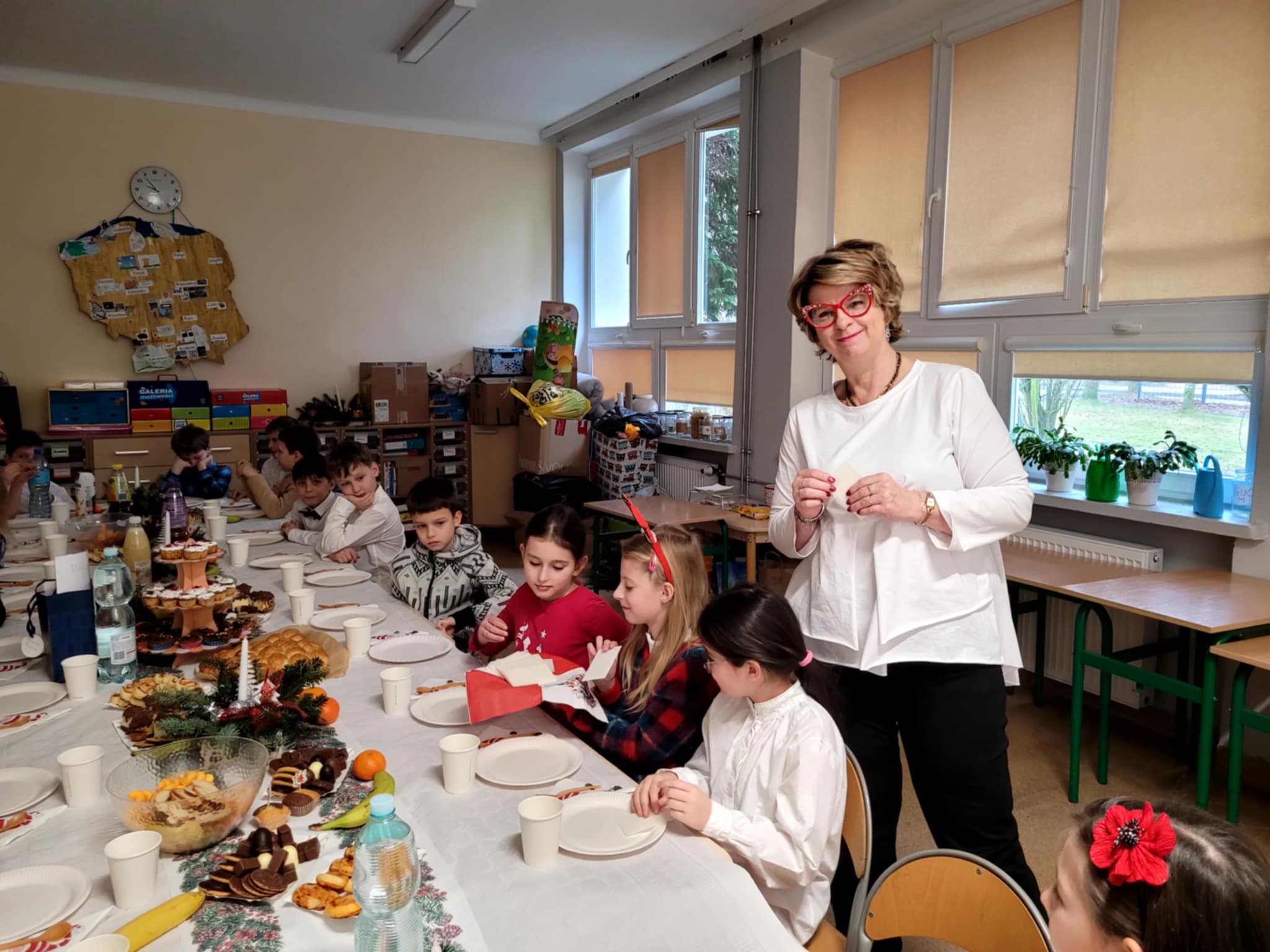 Było miło, nostalgicznie. wzruszająco, pysznie, wesoło. Uroku dodało wspólne śpiewanie kolęd i pastorałek oraz muzyka na żywo w wykonaniu kolegów z klasy. Dużo uśmiechu wywołały też prezenty. Trochę żal, że to ostatnia Wigilia w takim składzie. Za rok będziemy w kl.4